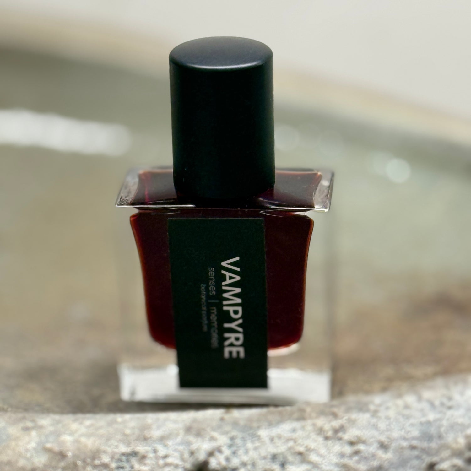 Vampyre gets it name from the western red cedar that naturally colors and brings aromatics to this woodsy-meets-floral scent. The fragrance is sexy and deep with a hint of the unknown. Key notes are moroccan rose, patchouli, rosewood and cypress.