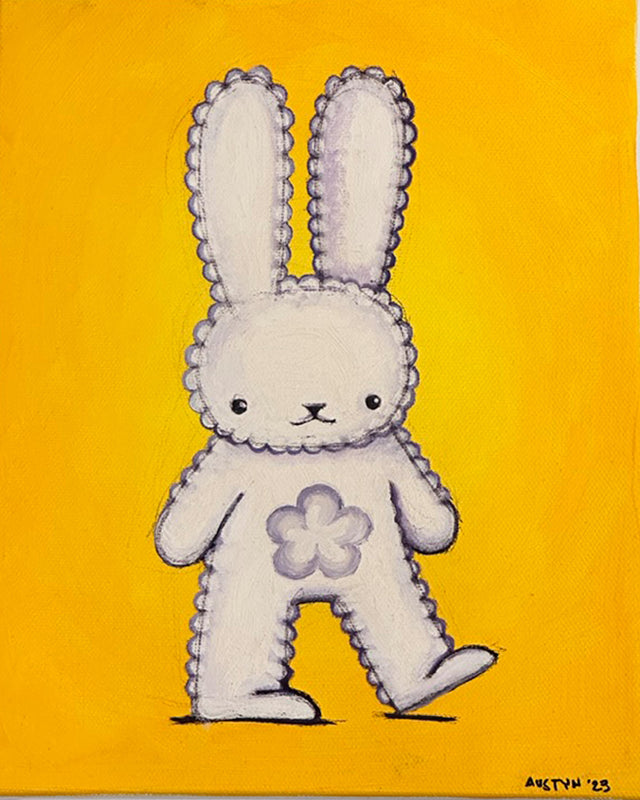 Austyn has taken her high vibration happiness bunnies to canvas! This rabbit is Waffle, a folk-pop character from Austyn Taylor’s imagination painted in oil on canvas. Spreading joy, love, optimism and hope!