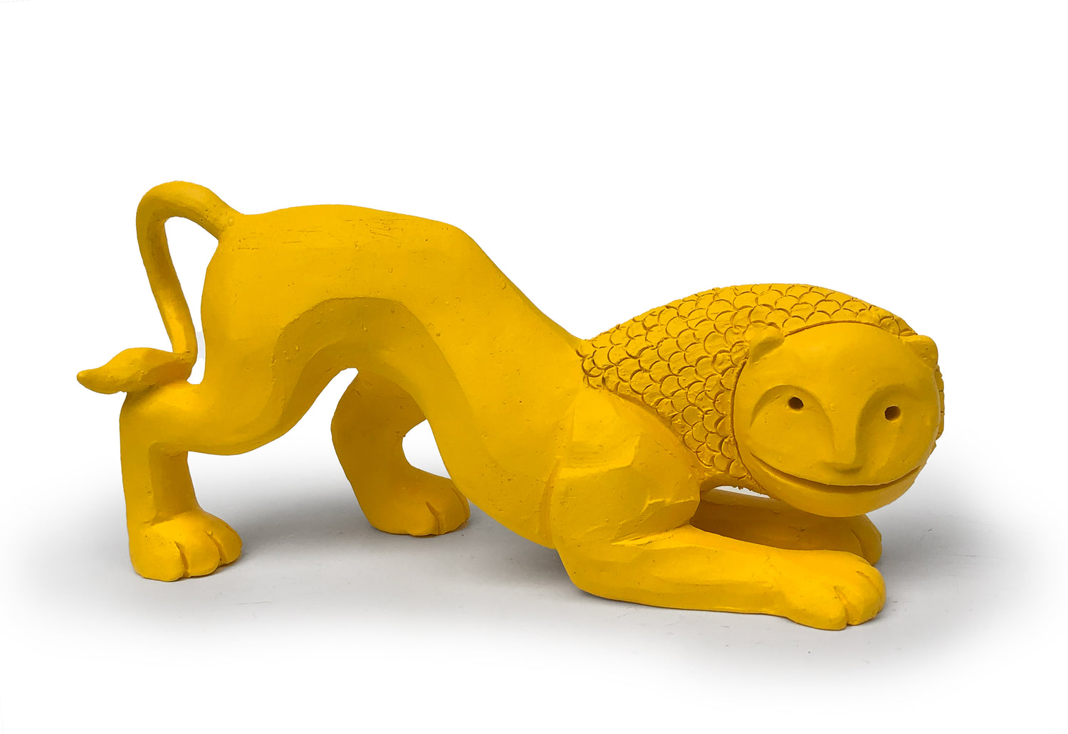 Austyn Taylor's newest series of ceramic sculptures play in conversation with each other, with her larger fun folk-pop characters, and with you! Buy as a group or individually to spread joy, love, optimism and hope… Austyn's ceramic yellow crouching lion is inspired by ancient art but feels totally modern. Named History, he evokes a curious humor as a salve to the oft absurd and alienating experience of existing. Bring him home as part of your family!
