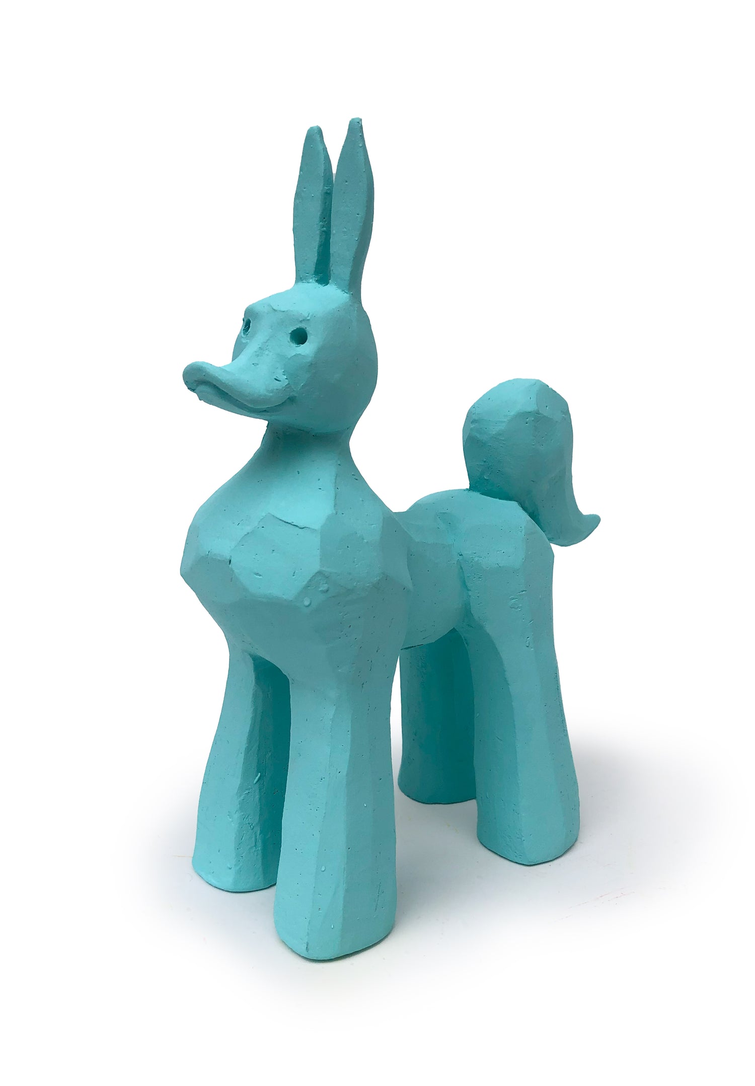 Austyn Taylor's newest series of ceramic sculptures play in conversation with each other, with her larger fun folk-pop characters, and with you! Buy as a group or individually to spread joy, love, optimism and hope… Open is Austyn's turquoise ceramic duck pony sculpture.