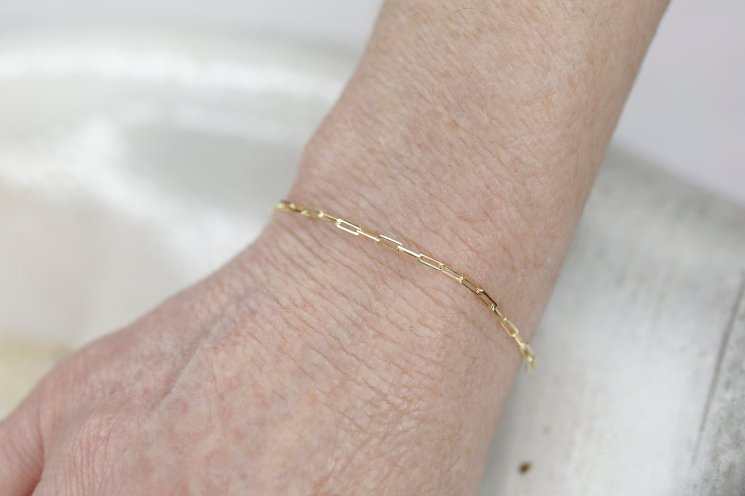 14K solid gold link bracelets and anklets don’t need much care. You can remove residue by brushing it with a very soft toothbrush dipped in water with a few drops of dish washing liquid.