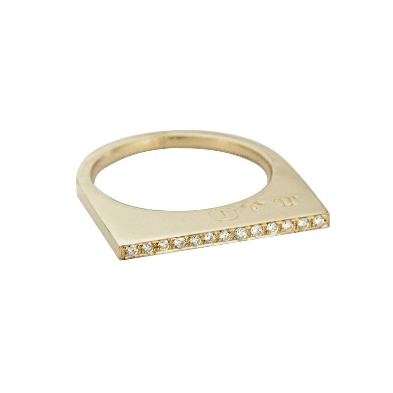 Jeffrey Levin / Ring / Super Flat Skinny Stacking with Gems - 14K Yellow Gold / 5 / Diamonds