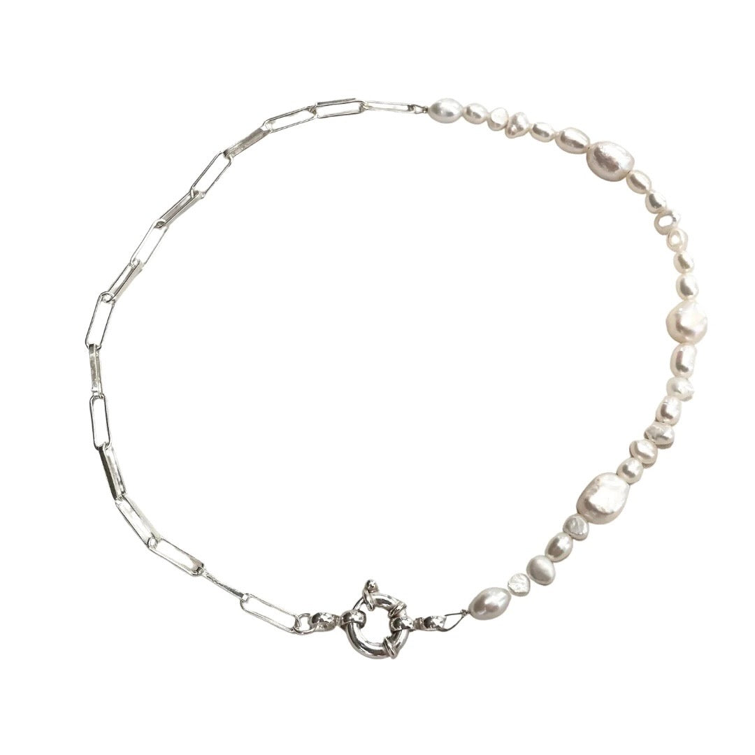 Pearls are for everyone! This dual choker necklace features the best of two fashion icons: freshwater pearls plus link chain. Yellow combines her South African upbringing with a global worldview and pop art images of street culture to create modern jewelry.