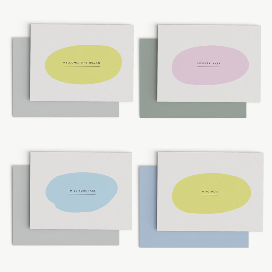 Chelsey Dyer Greeting Cards, Welcome Tiny Human; Forever Ever; I Miss Your Face; Woo Hoo