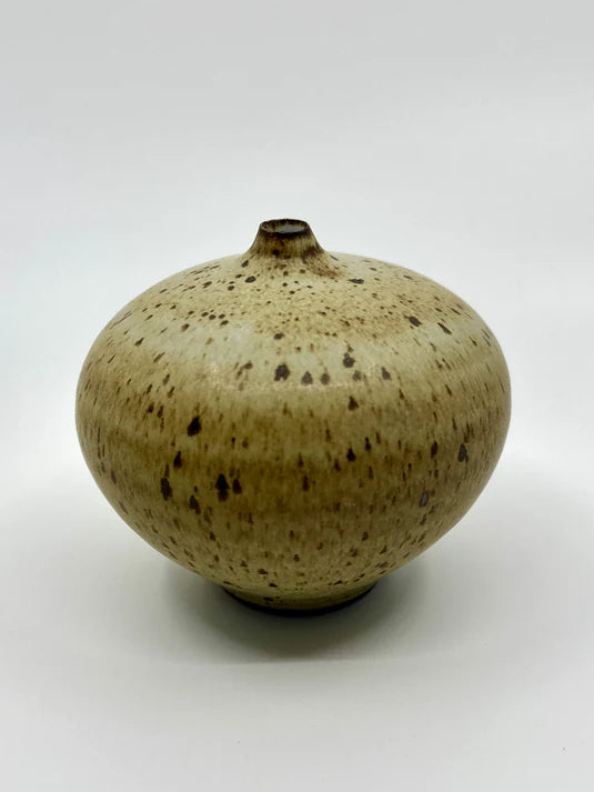 A short, plump vessel to layer with your decor. Dana Chieco forms are gorgeous one of a kind ceramics–a testament to the timeless beauty of heirloom pottery. Her version in this No 8 vessel is speckled with lavender and fawn tones.