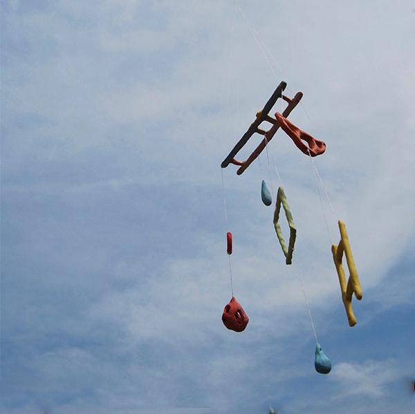 It's super fun to see a resurgence of kinetic sculptures in Kyra's hanging mobile collection. Hers are especially charming with their various shapes, often a chair or two, revolving under the influence of the faintest current of air.